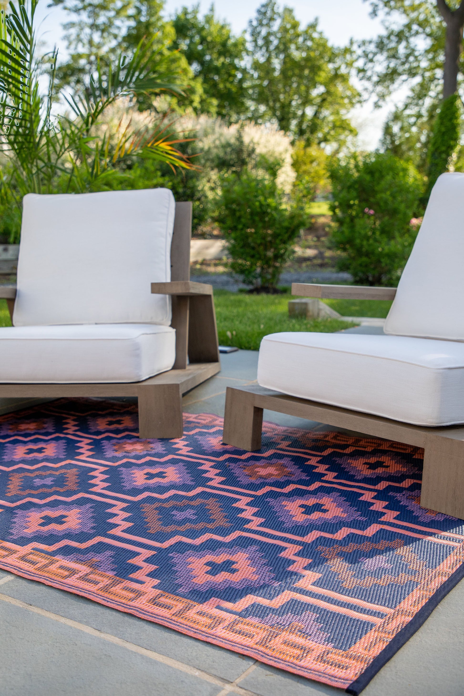 Alfombra tejida en polipropileno plástico reciclado y reciclable.